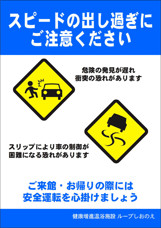 駐車場でのスピードの出しすぎにご注意ください