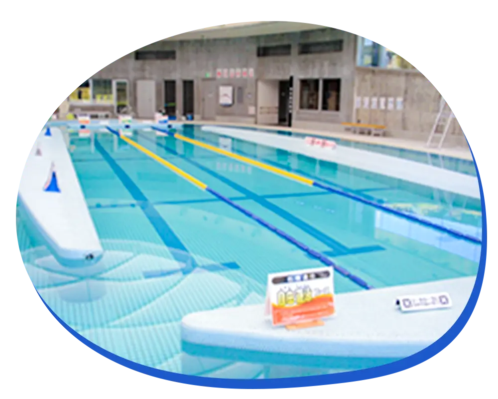 水深1m、1コース20m×3コースの練習用プールです。泳力向上を目指す方の自主練習や、水泳教室・無料レッスンを実施しています。目的やレベルに合わせてご利用いただけます。