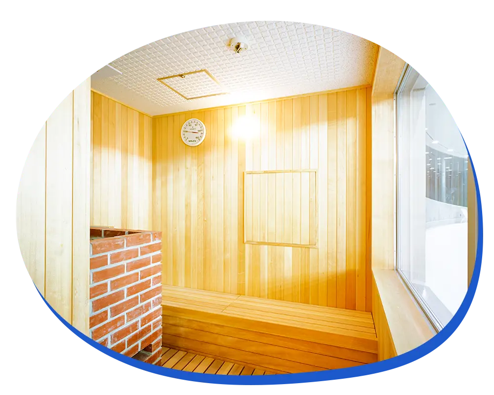 明るく清潔感のある空間で、ゆったりとお着替えいただけます。浴室では体を温めながら、のんびりとお過ごしいただけます。一日の疲れを癒すひとときをお楽しみください。