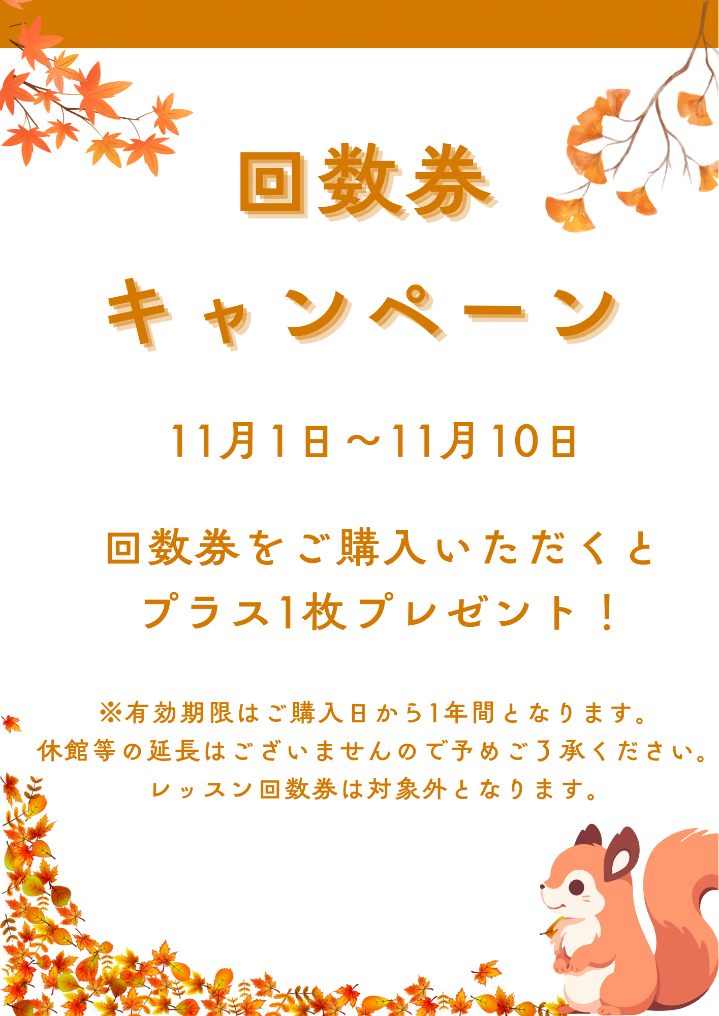 - 11月1日~11月10日までの期間限定で回数券キャンペーンを開催!!