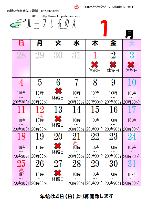 年末年始休館日 12月29日~1月3日